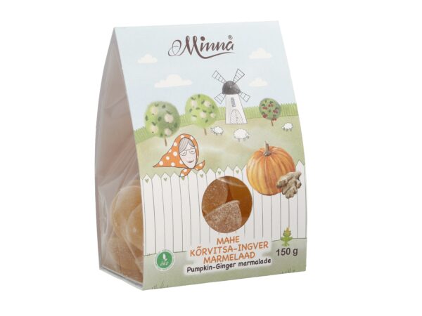 150 g3.70 €Koostisosad: vesi, peedisuhkur*, glükoosisiirup*, püree* 3,3% (kõrvits), happesuse regulaator (sidrunhape), želeeriv aine agar-agar*, ingveripulber*